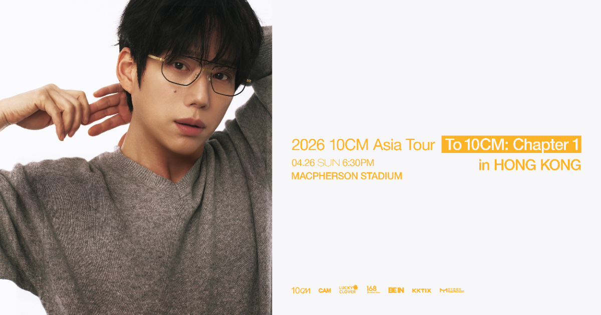 一直保留K-pop樂隊特色的10CM,憑藉獨立音樂宗旨,不論在韓國,還是海外也大受歡迎。 他的《2026 10CM Asia Tour <To 10CM: Chapter 1>》巡迴演唱會由今年1月在首爾開始,途經曼谷、新加坡、台北、東京等地,並將於2026年4月26日在香港麥花臣場館盛大舉行!